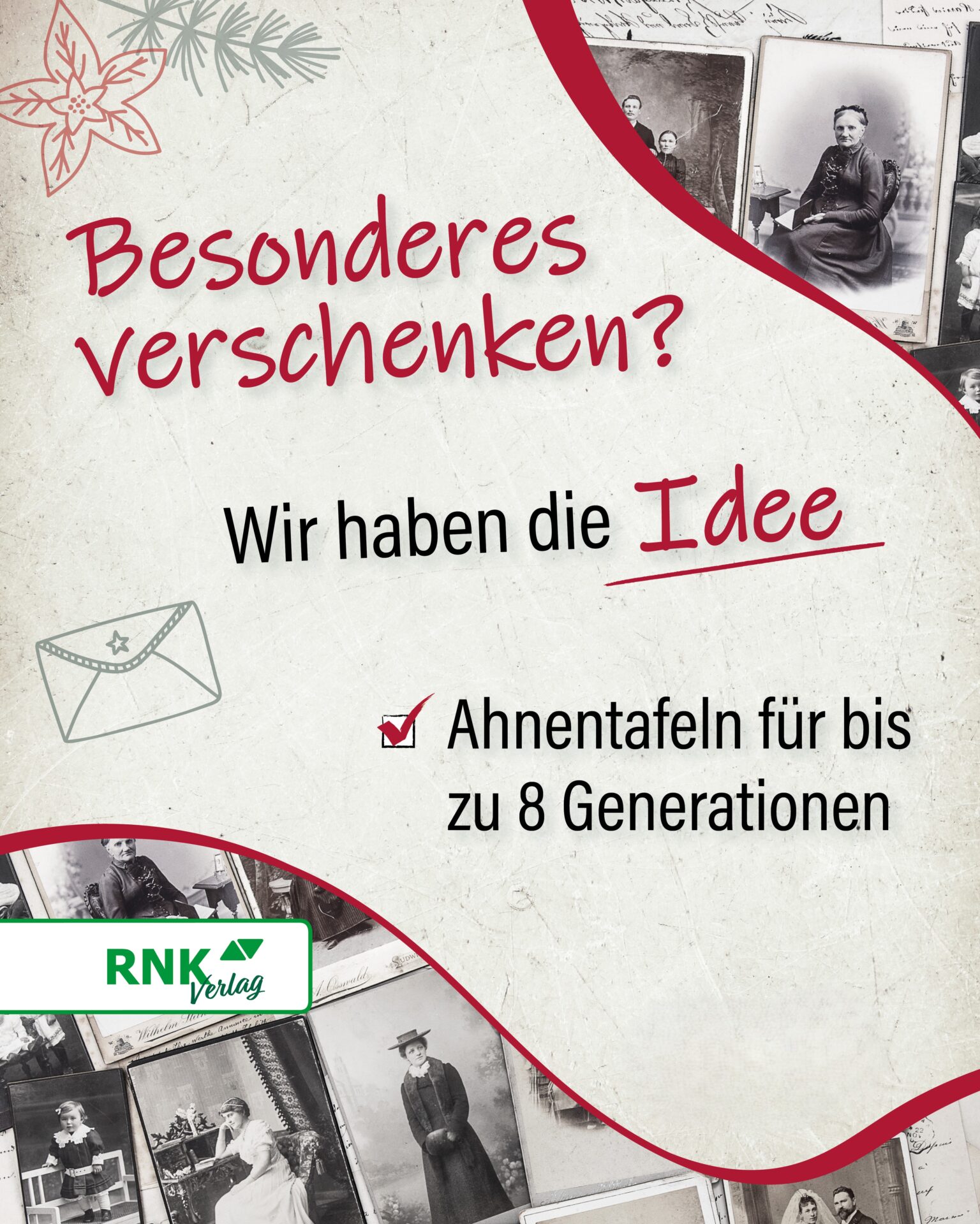 Entdecken Sie die faszinierende Welt der Ahnenforschung und schaffen Sie detaillierte Verbindungen zu Ihrer Familiengeschichte. Mit unseren Ahnentafeln verwandeln Sie Ihre genealogische Daten in übersichtliche, stilvolle und langlebige Visualisierungen, die mehrere Generationen überdauern.
