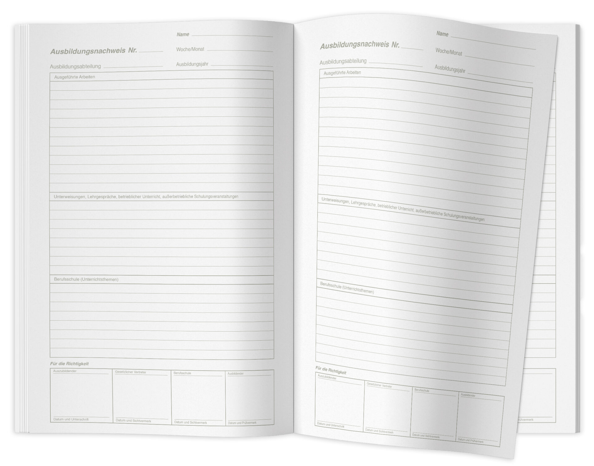 Ausbildungsnachweis – Heft für wöchentliche/ monatliche Eintragungen