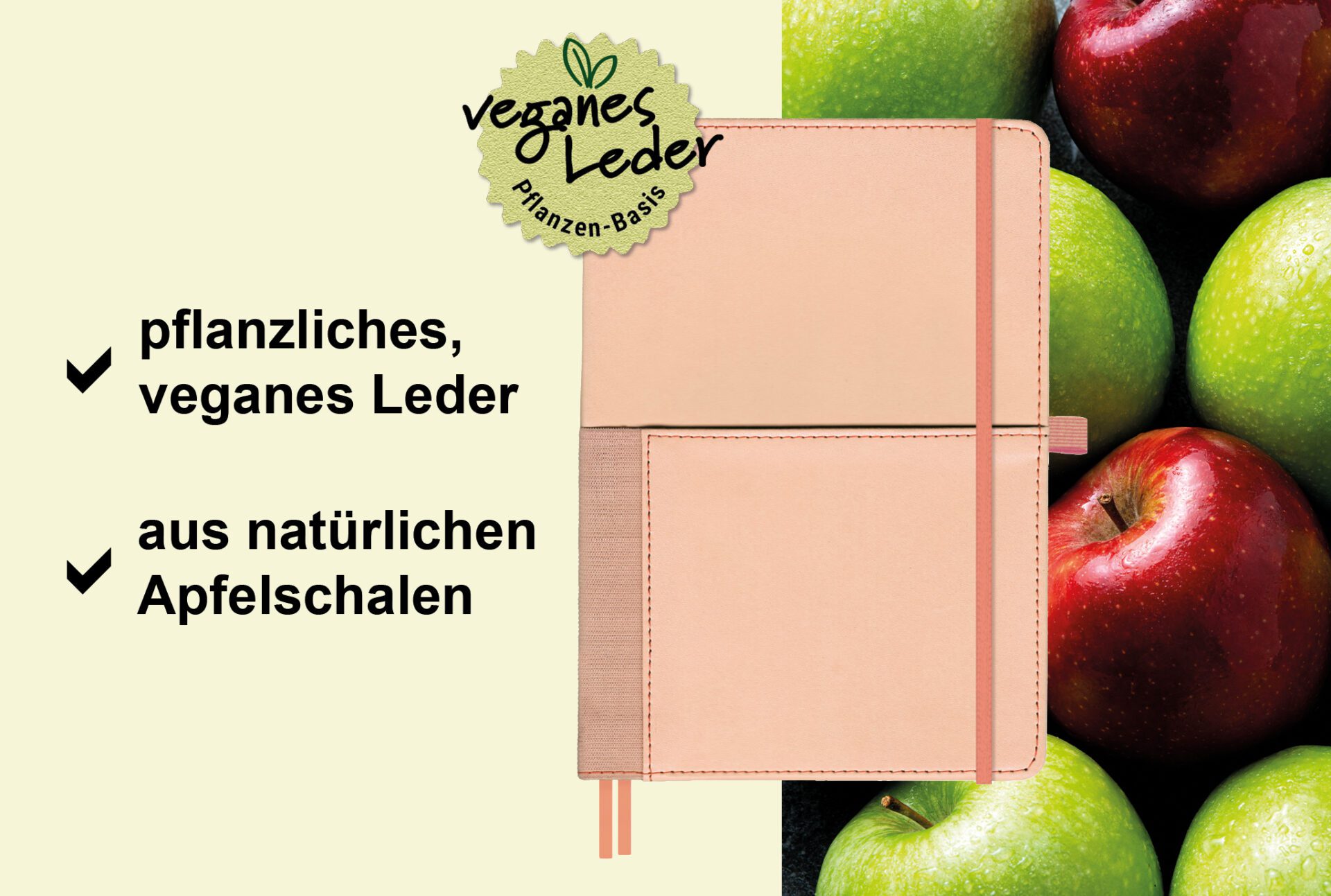 Einband aus Apfelschalen, mit Gummizug, Leseband, Innentasche, Stifthalter und Smart Pocket, 96 Blatt