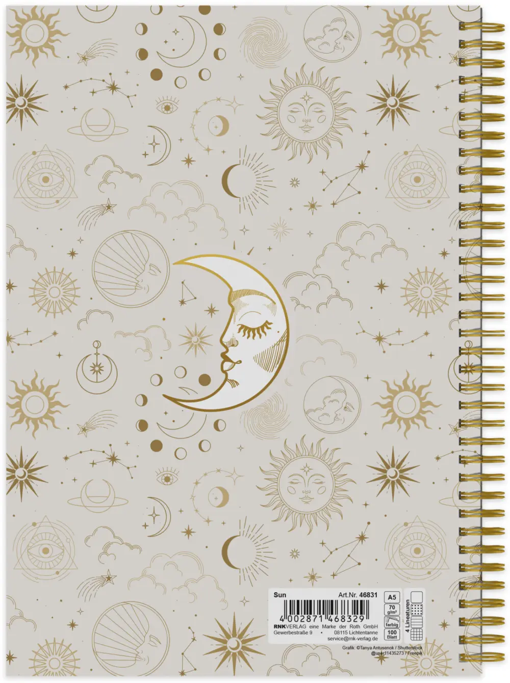 Spiral-Notizbuch mit 4 farbigen Rändern und Lineaturen „Sun“ DIN A5