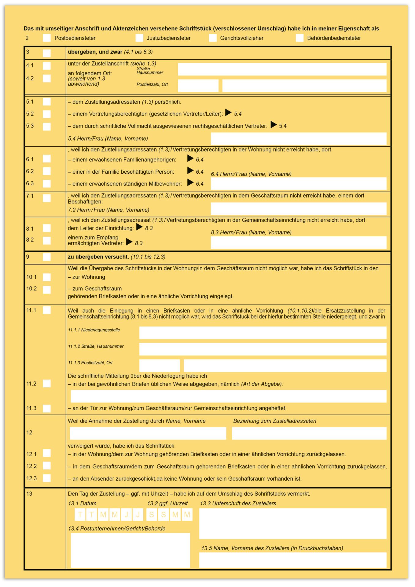 Dieser amtliche Vordruck dient der Erstellung eines Zustellnachweises bei der Zustellung nach § 166 ZPO. Auch für Tintenstrahl-und Laserdrucker geeignet.